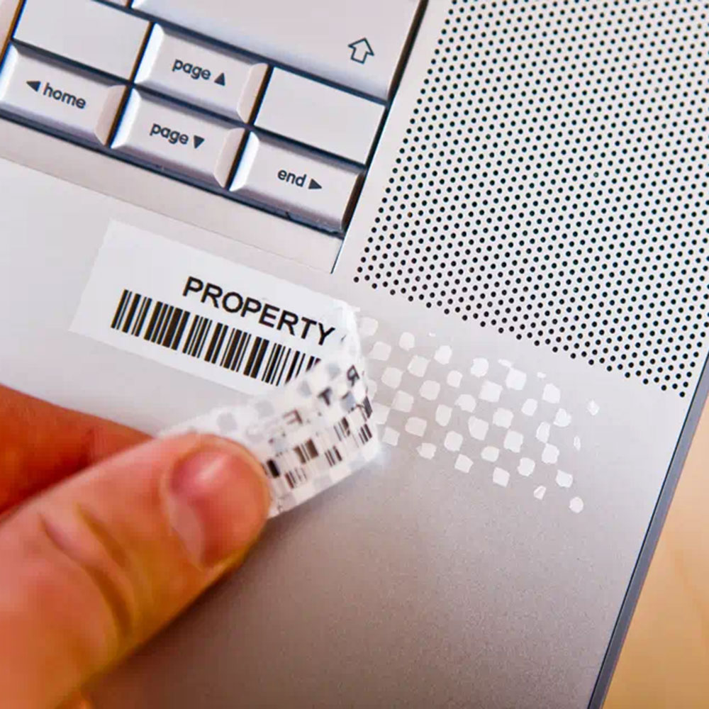 Идеална за създаване на етикети за безопасност, тази ламинирана лента гарантира, че етикетът ти не може да бъде премахнат от едно място и поставен на друго. Веднъж премахната, TZe-SE4 оставя специфична маркировка, унищожавайки отпечатания текст, и етикета не може да се използва повторно.