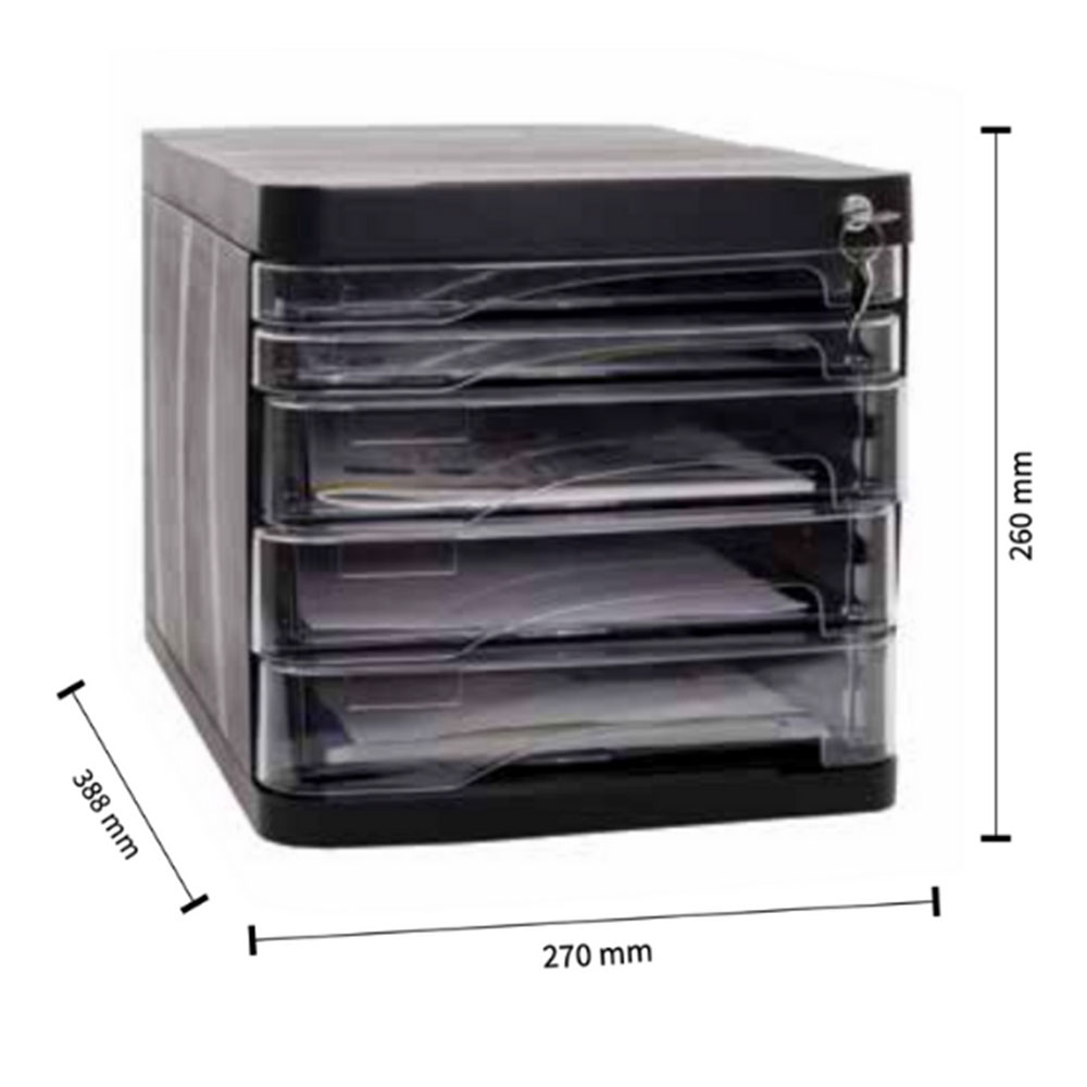 Съдържа 4 прозрачни чекмеджета, плъзгащи се, снабдени с дръжка.