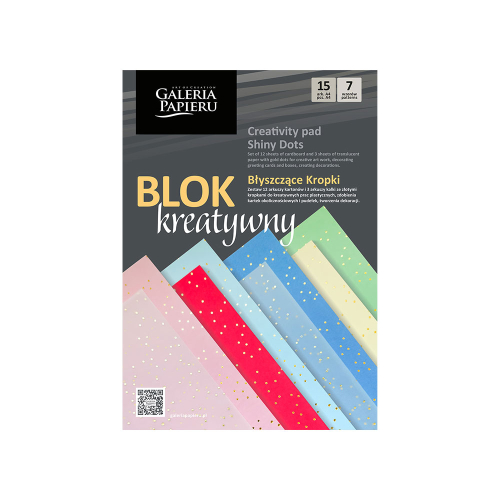 Дизайнерски блок с 12 листа картон в 6 цвята и 3 листа паус със златни точки.