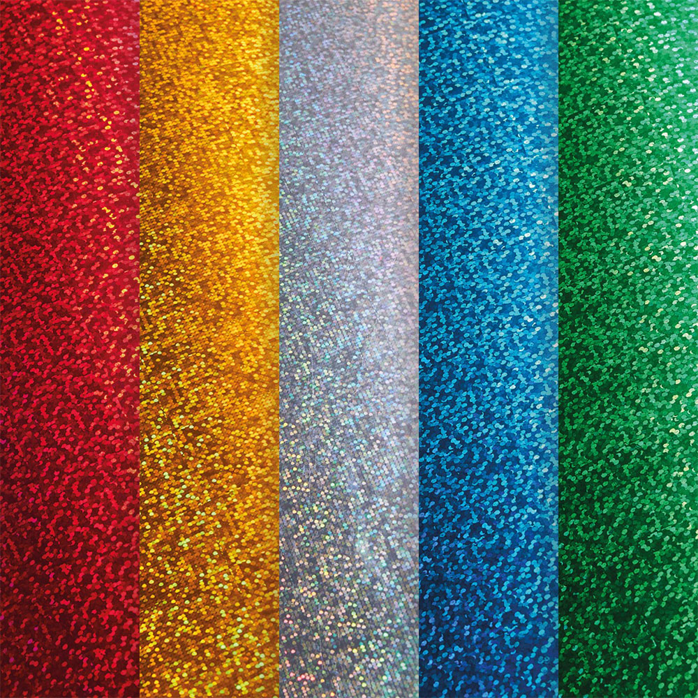 Дизайнерски блок с 15 листа картон с холографски шарки и метален блясък в 5 различни цвята.