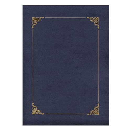 Гладък картон в син цвят със златиста рамка.