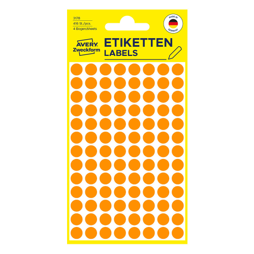Самоз. кръгчета Avery ф8 неон орж. 416бр , 52096