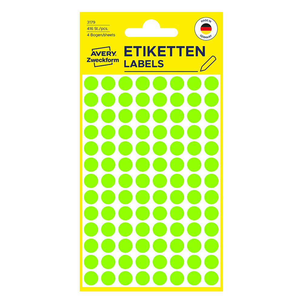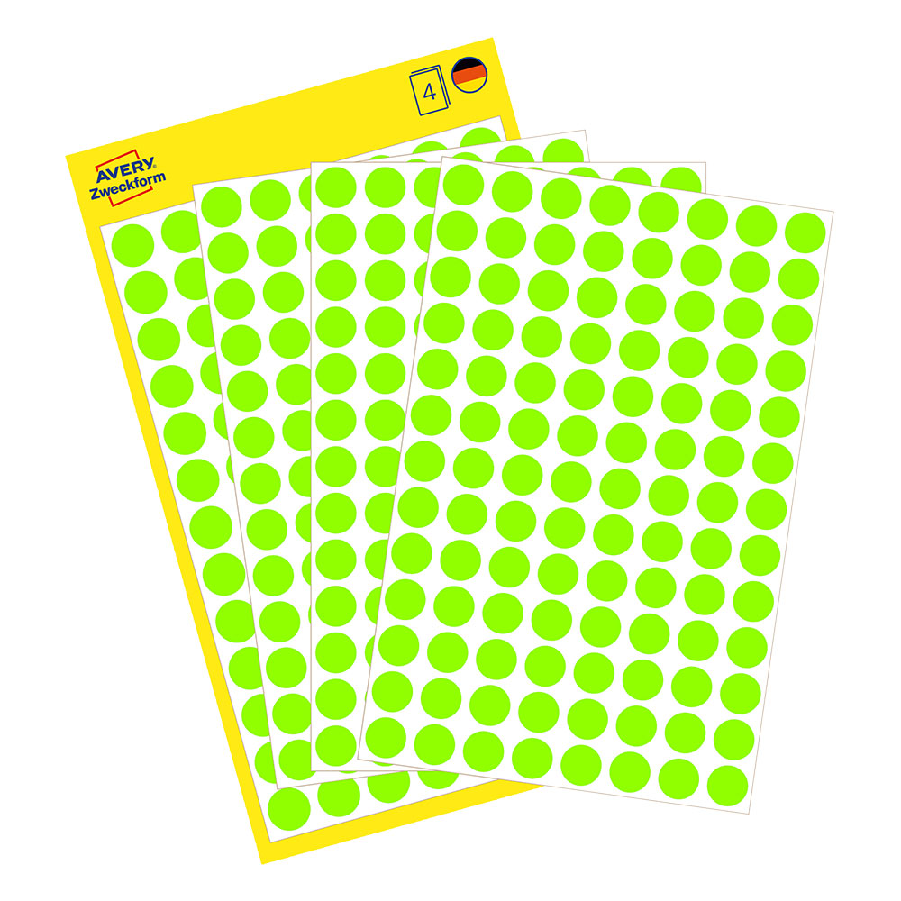 Самоз. кръгчета Avery ф8 неон злн. 416бр , 52097