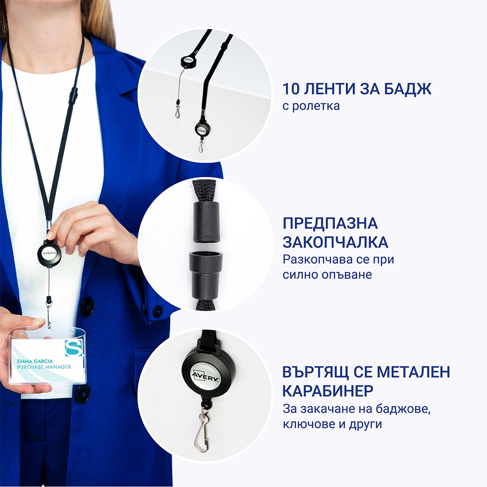 Лента за бадж Avery 4830 с ролетка (10 броя)