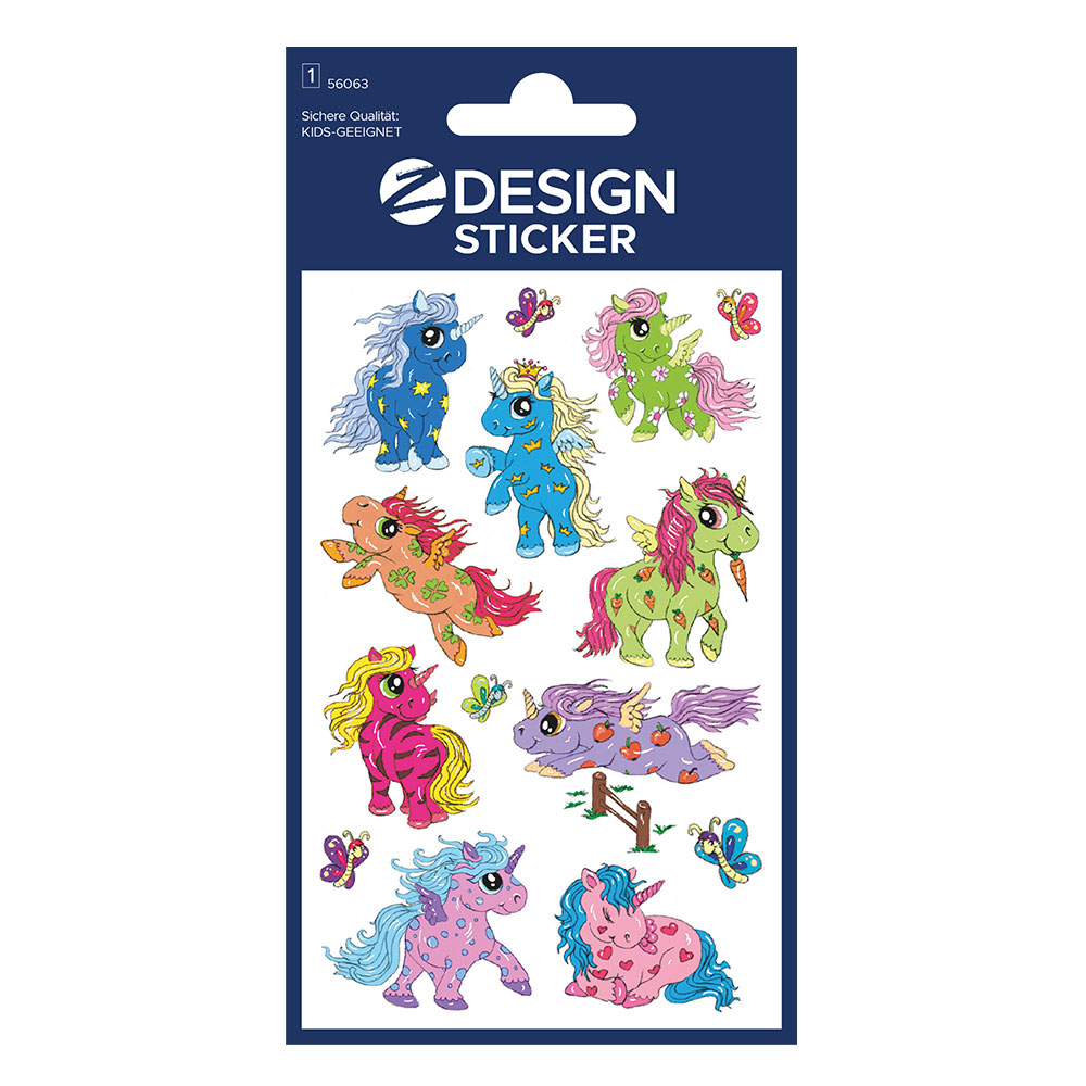 Самозалепващи се декоративни стикери Avery с еднорози и брокат.