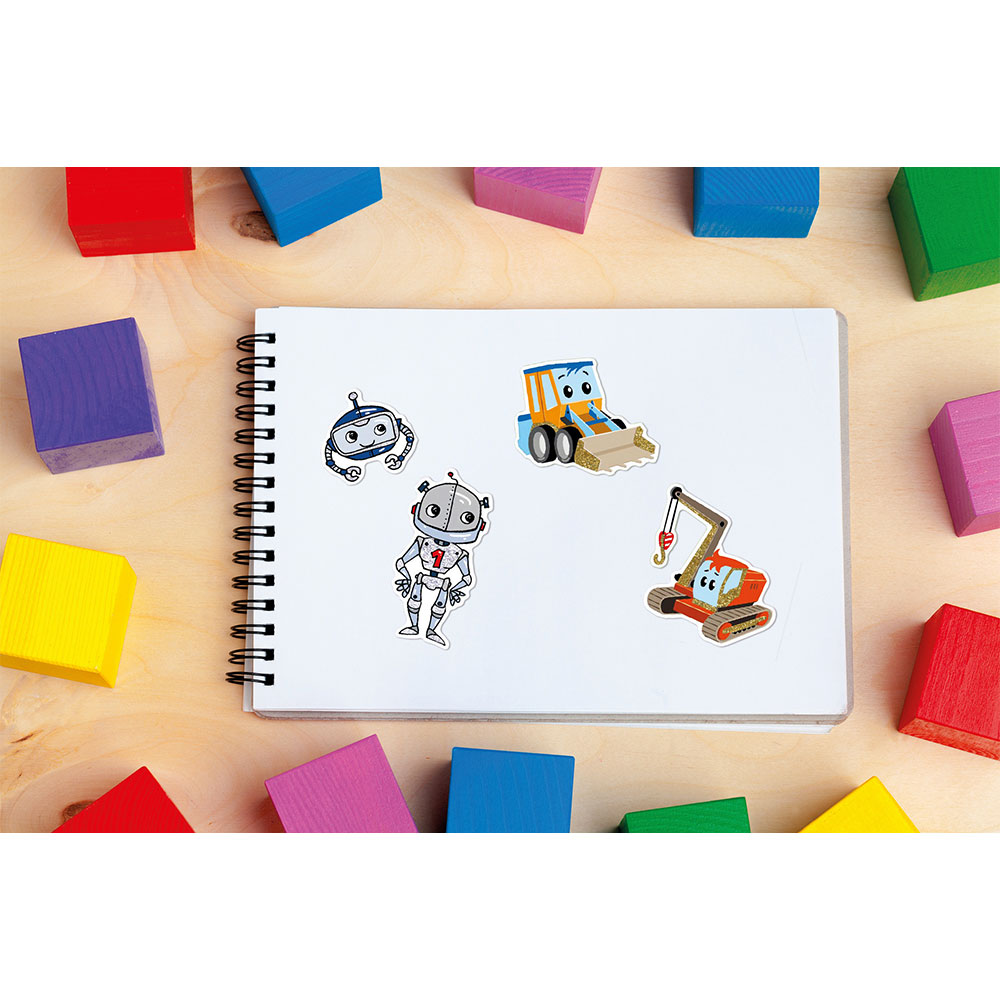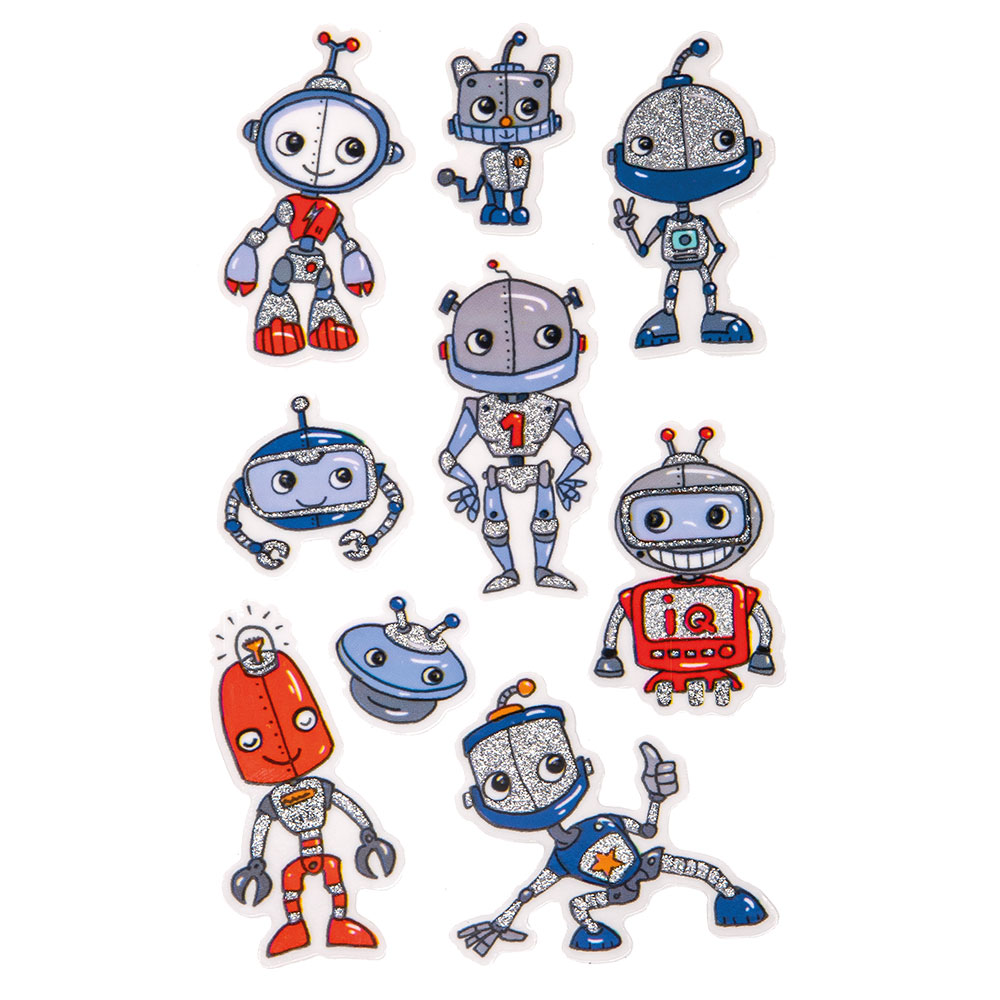 Забавни и цветни стикери на роботи с брокат и искрящ сребърен ефект.