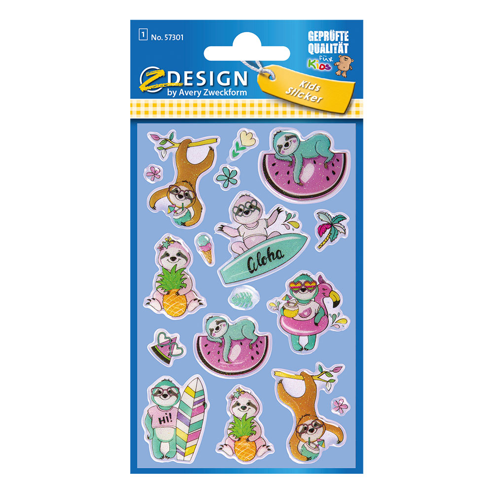 Самозалепващи лъскави 3D стикери Avery с ленивци.