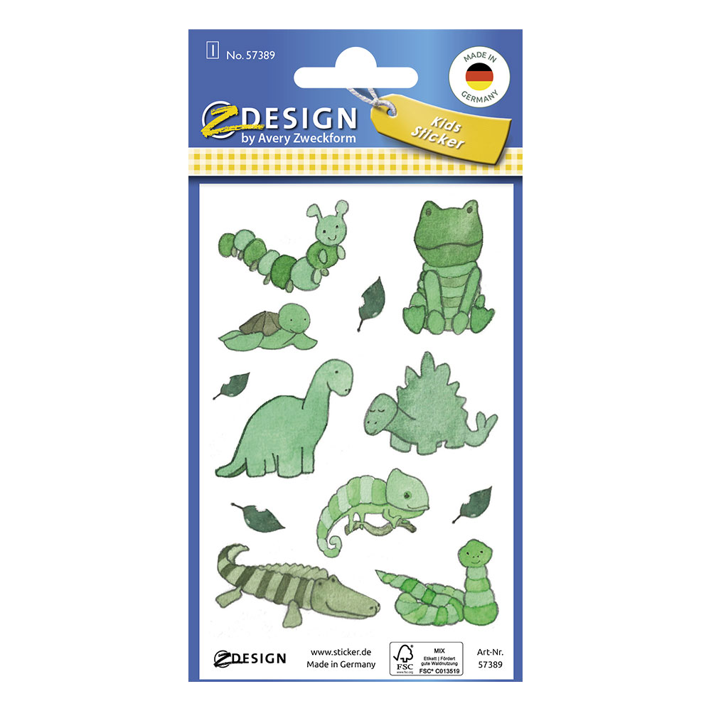 Самозалепващи декоративни стикери Avery с влечуги и брокат.