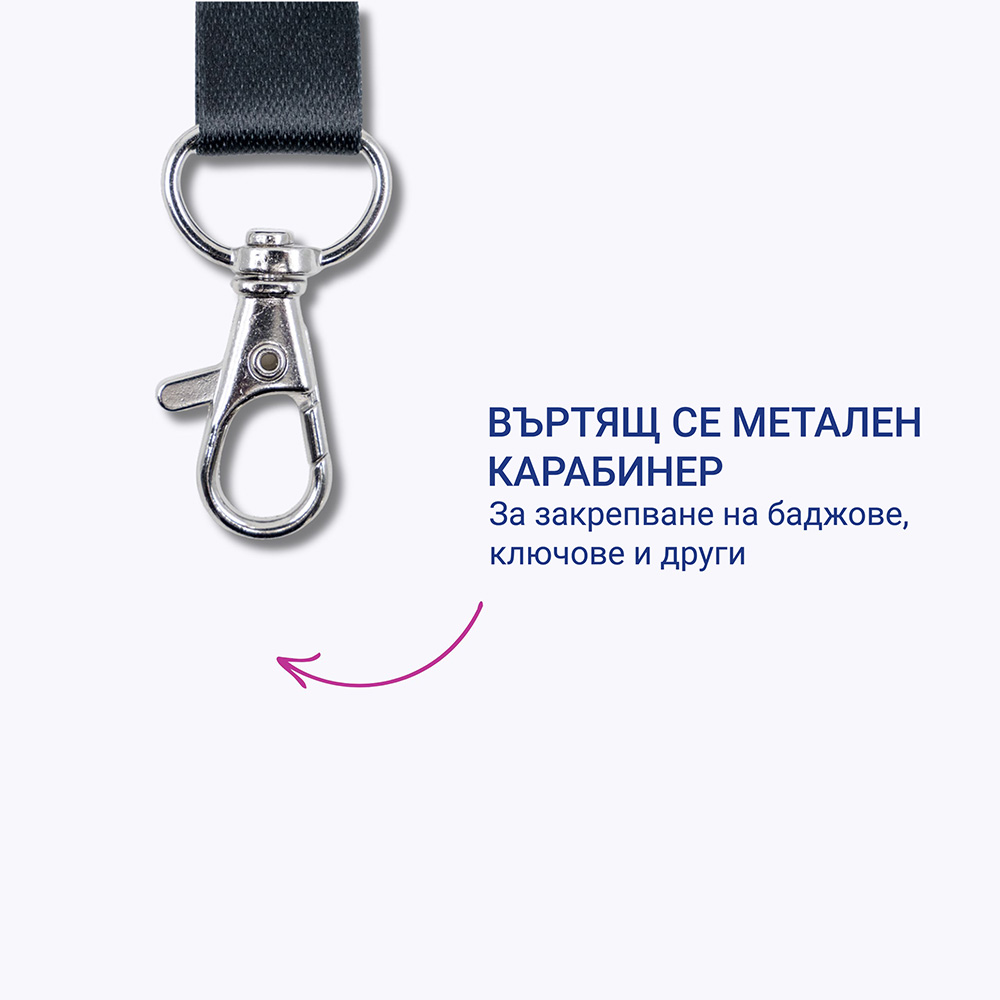 - Универсалност: Въртящата се метална кука позволява лесно закрепване както на баджове и карти, така и на ключове.