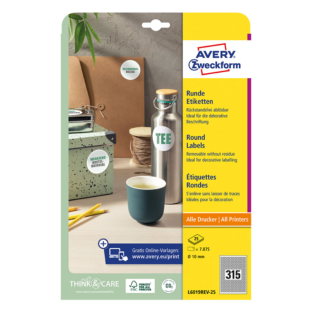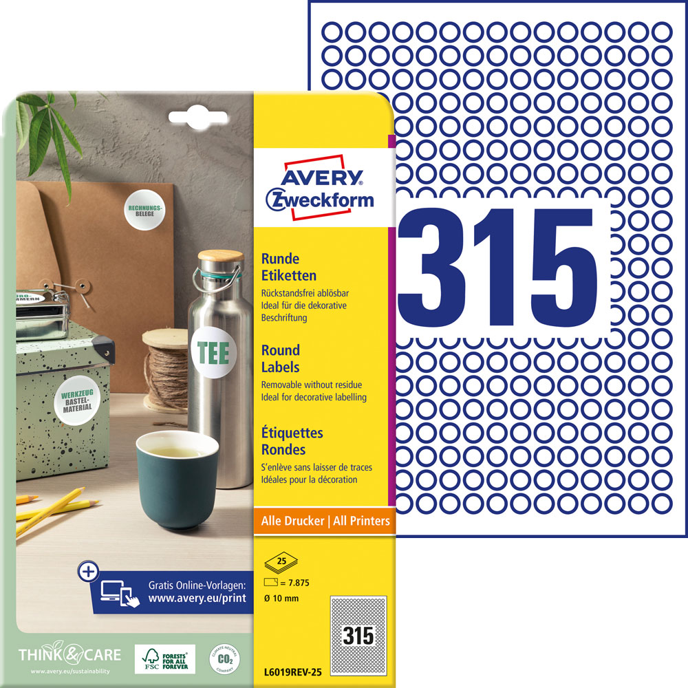 Мини кръгли самозалепващи етикети за многократна употреба Avery L4738REV-25.