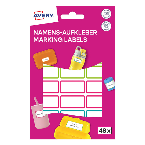 Забравете за изгубените бутилки и разменените кутии за обяд! С водоустойчивите стикери на Avery Zweckform вещите на вашето дете ще се прибират вкъщи всеки ден. Тези етикети от специално фолио са създадени да издържат на всичко – от разливане на сок до ежедневно миене в съдомиялна машина. Идеални за детската градина, училището или спортната зала.