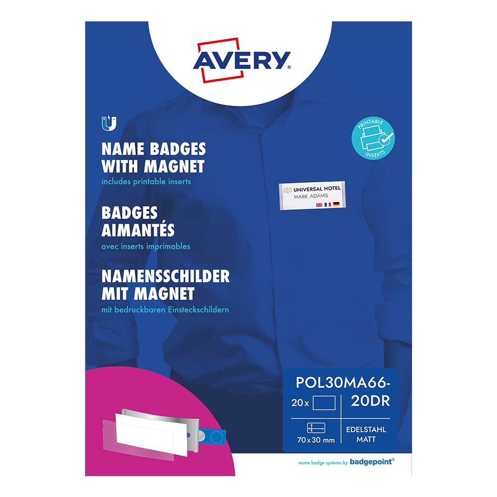 Премиум комплект магнитни баджове Avery POL30MA66-20DR - Ефект „Неръждаема стомана"