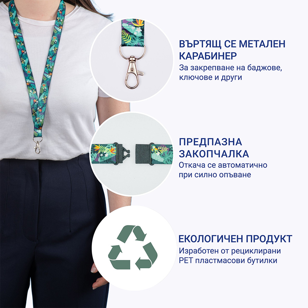 - Универсалност: Въртящата се метална кука позволява лесно закрепване както на баджове и карти, така и на ключове.