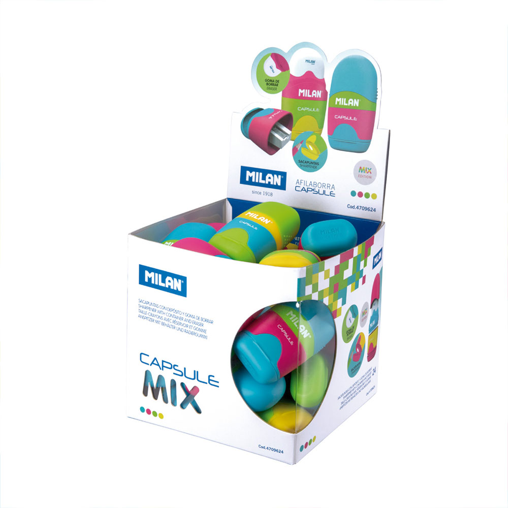 Забрави за ровенето в несесера! С Milan Capsule имаш всичко под ръка. Тя е компактна и „умна“ - съчетава прецизна острилка и мека гума в един корпус. Лека и здрава, и изглежда страхотно на чина.