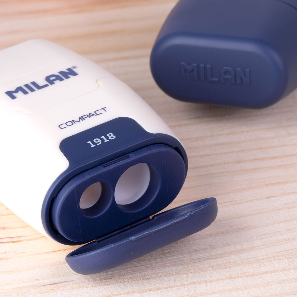 Върнете се към корените на най-добрите училищни пособия с колекцията "Since 1918". Този модел Compact съчетава модерната функционалност с ретро естетиката, която направи Milan световноизвестна марка. С вградената легендарна гума 430 и прецизна острилка, този инструмент е поклон към традициите и качеството, издържало теста на времето.
