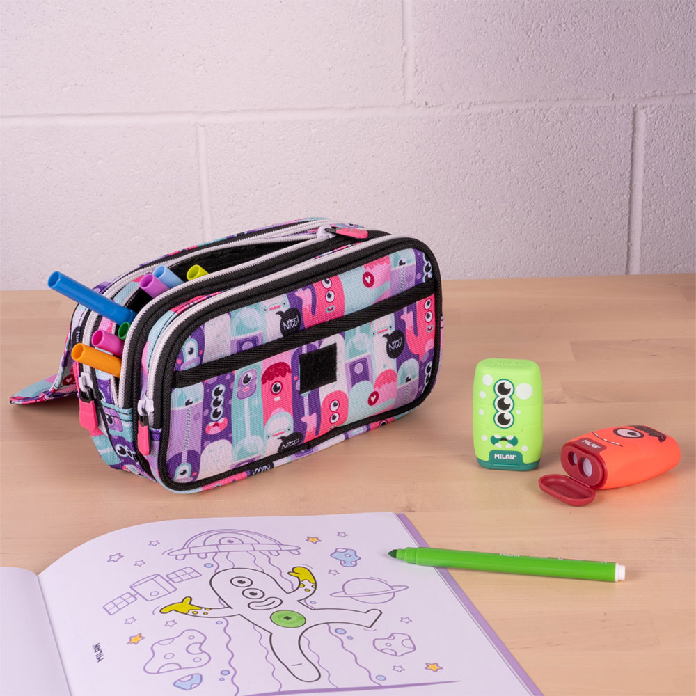 Приготви се за излитане! Серията Aliens на Milan превръща всяка грешка в забавно откритие. Този модел Compact е твоята станция за подготовка – разполага с голяма и мека гума за „заличаване“ на космически грешки и мощна острилка с резервоар за твоите моливи. С веселите илюстрации на извънземни приятели, училището става много по-забавно!