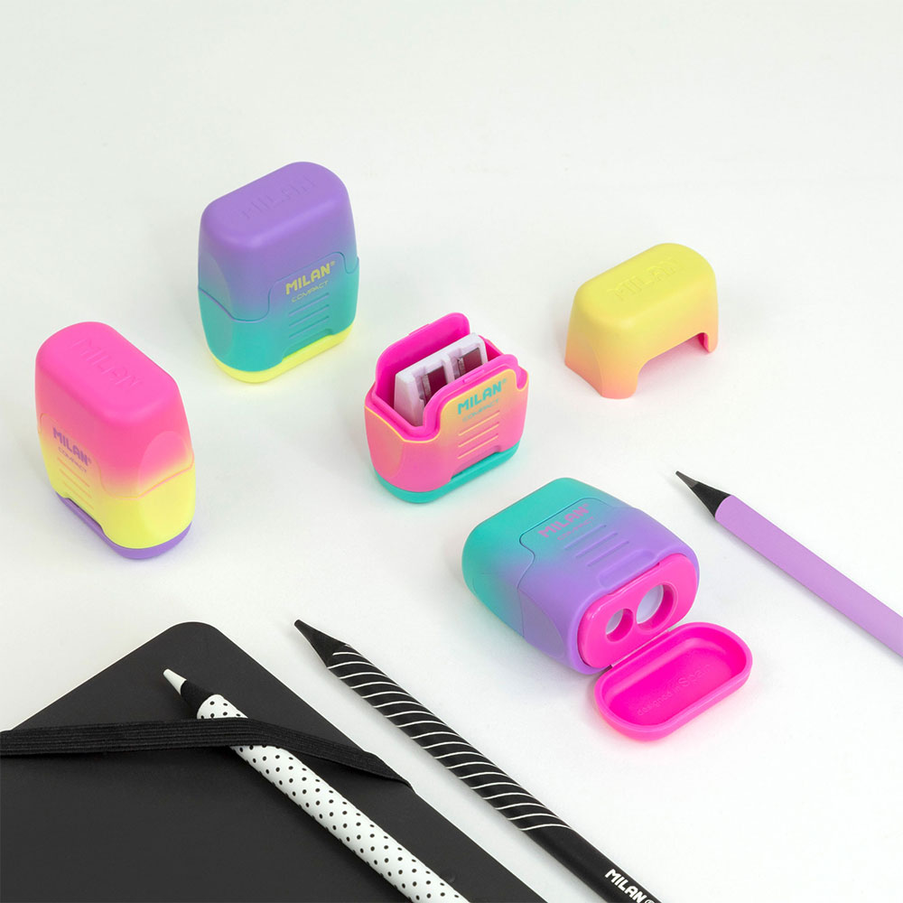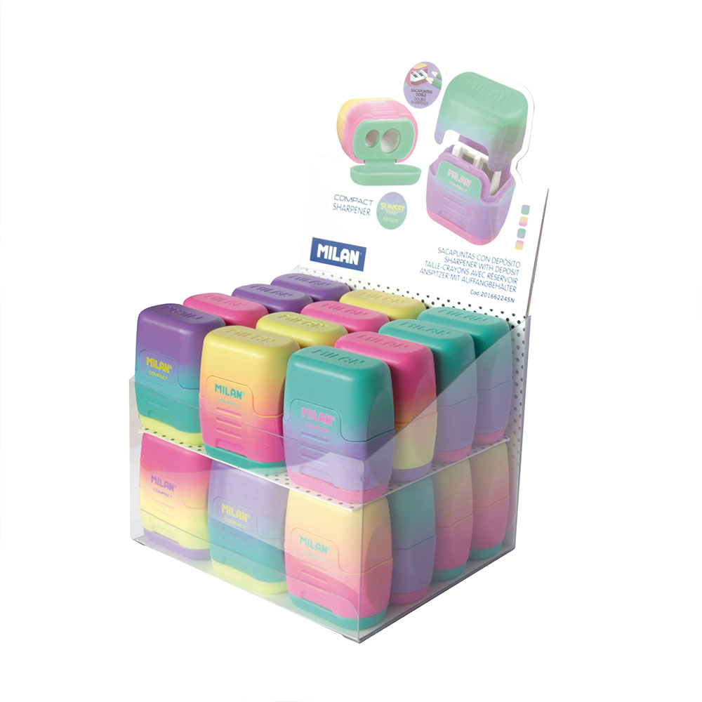 Острилка Milan Compact Sunset с резервоар – Цветен акцент за твоето бюро!