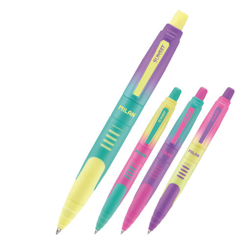 Направи записките си толкова красиви, колкото са и твоите идеи! Химикалката Sunset от Milan е създадена за тези, които обичат естетиката във всеки детайл. Със своето кадифено меко Soft-touch покритие, тя не само изглежда невероятно с преливащите си цветове, но и е изключително удобна за дълго писане по време на часове или лекции.