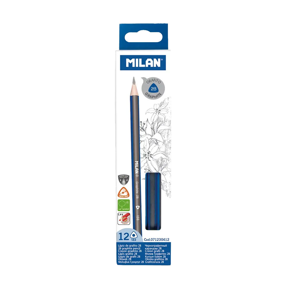 Подобрете преживяването си при писане и рисуване с висококачествения черен графитен молив на испанската марка Milan Triangular 2B. Специално проектиран за тези, които търсят мекота на линията и максимален комфорт, този молив е идеалният избор както за училище и офиса, така и за художествени скици.
