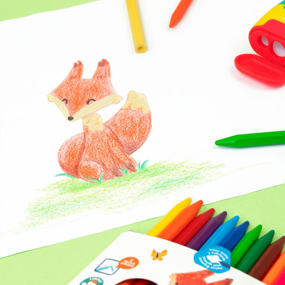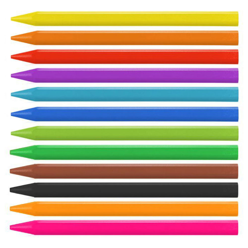 Открийте магията на восъчните пастели! Тези уникални моливи са направени изцяло от пастел, но са здрави и чисти като моливи. Триъгълната им форма е проектирана специално за малките ръчички, за да не се уморяват при дълго рисуване. А най-хубавото? В комплекта има два неонови цвята, с които рисунките ти буквално ще светят!