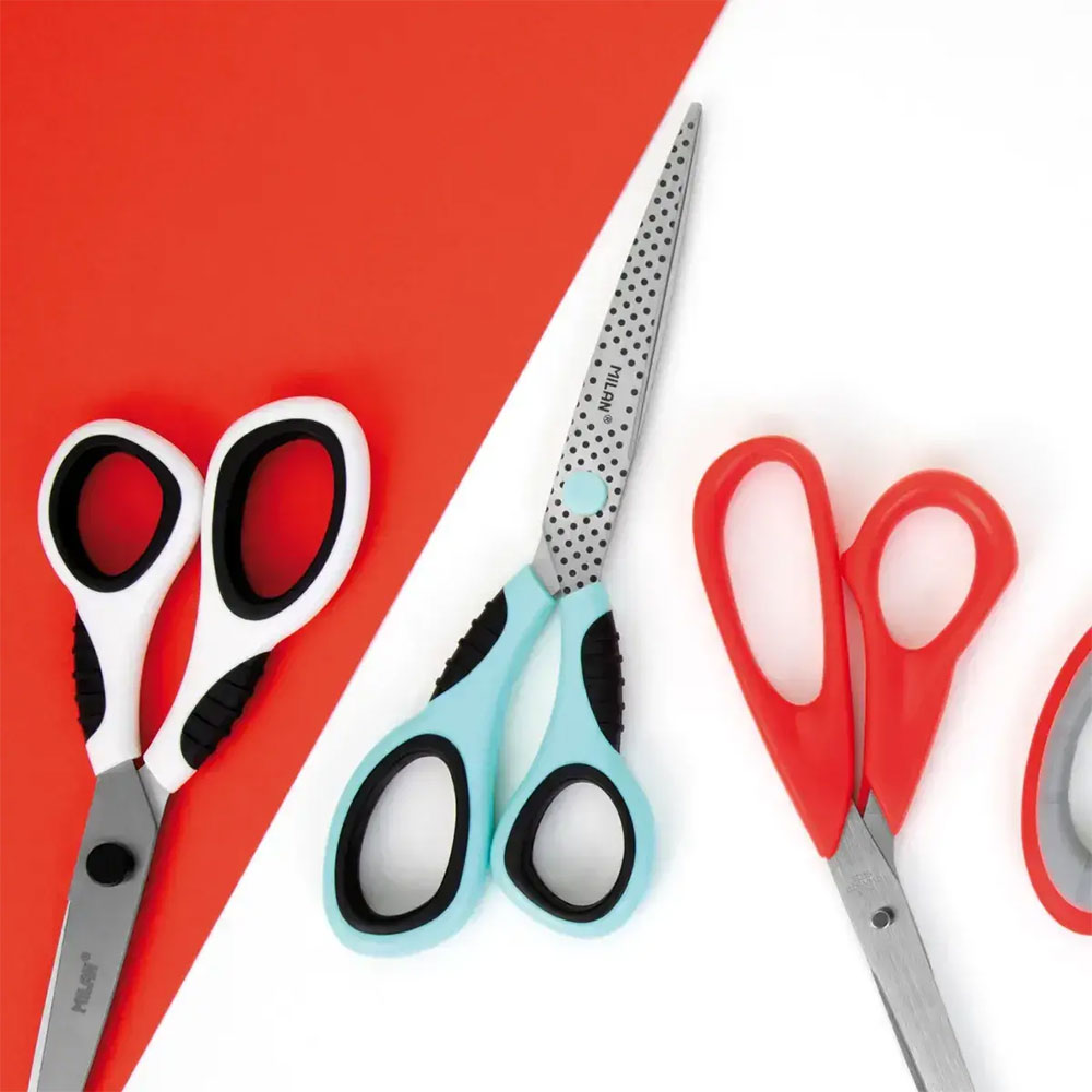 Кой казва, че офис инструментите трябва да са скучни? Серията Dots & Buttons на Milan превръща обикновената ножица в моден аксесоар за вашето бюро. Със своя игрив десен на точки и свежи цветове, тя е идеалният избор за хора с творчески професии, студенти или всеки, който обича да обгражда работната си среда с красиви предмети.