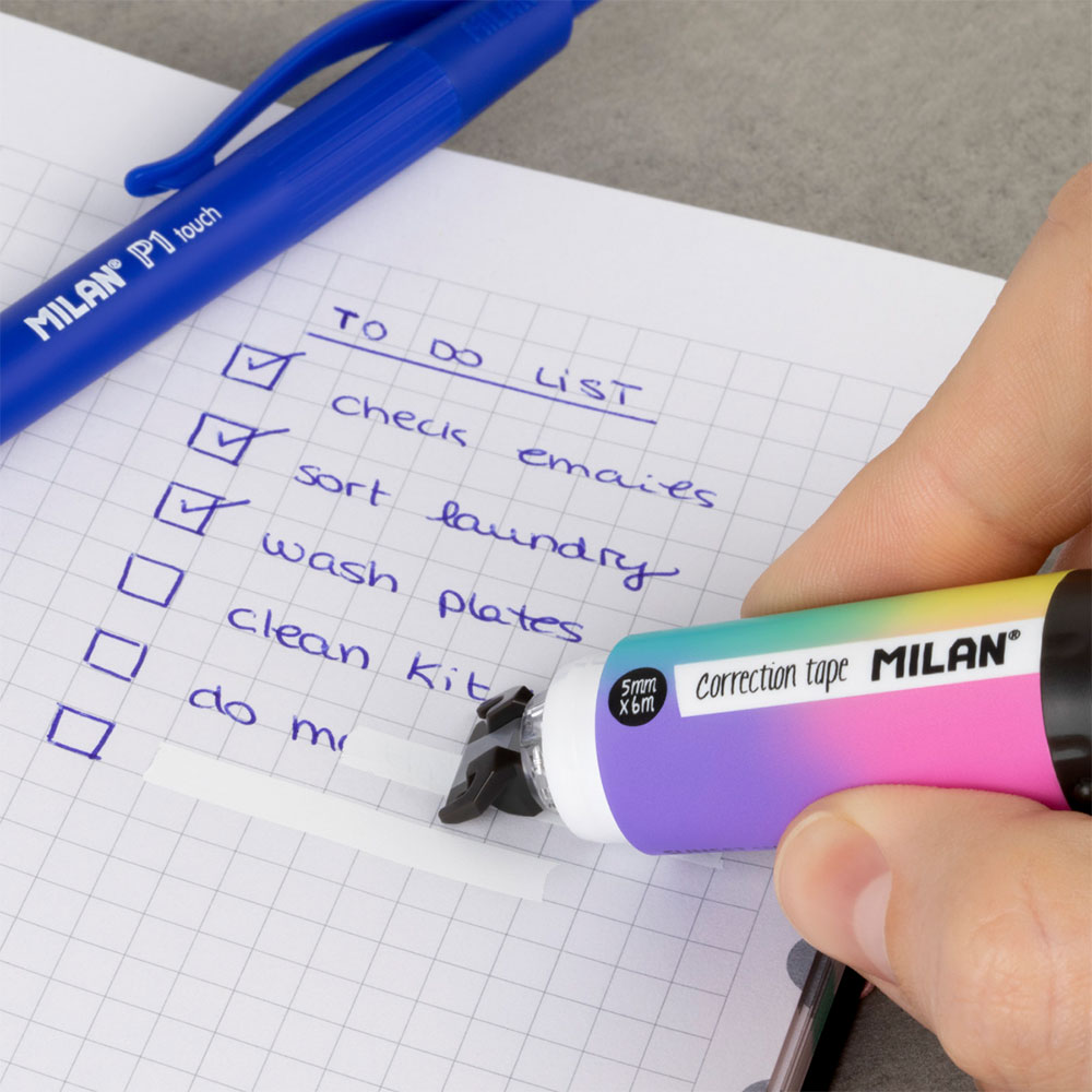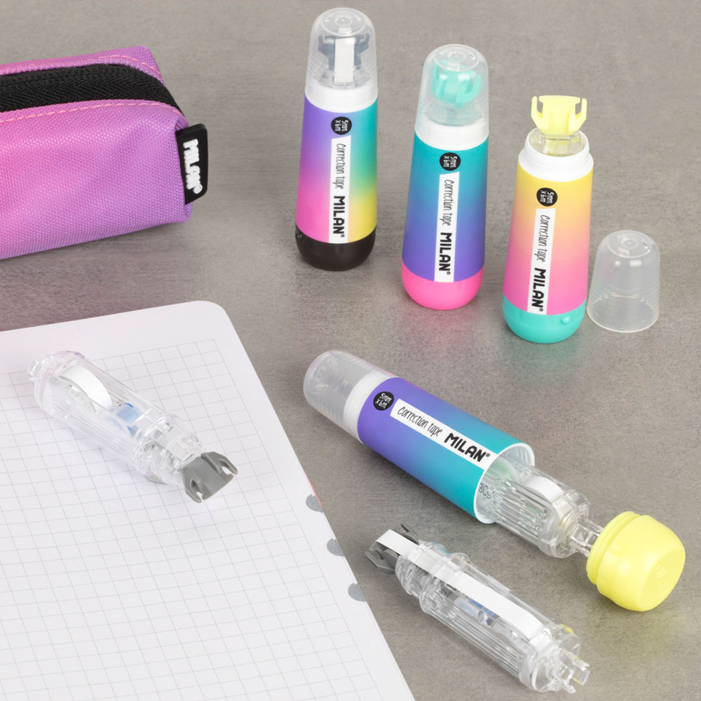 Добавете цвят и професионализъм към вашето бюро с коригиращата лента от ексклузивната серия Sunset на испанската марка Milan.