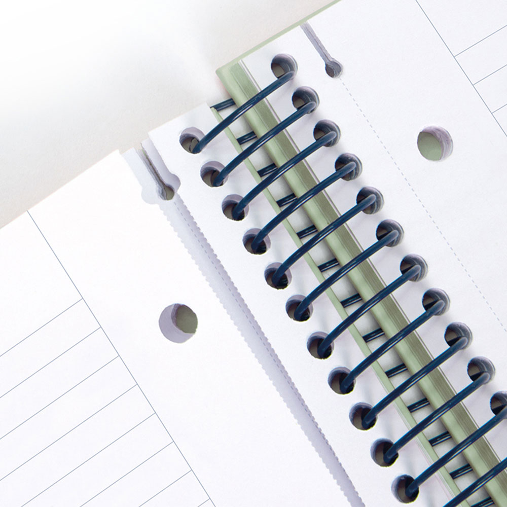 - Микроперфорация: Всеки лист е снабден с фина микроперфорация, което позволява лесно и чисто откъсване, без да повреждате останалата част от тетрадката.