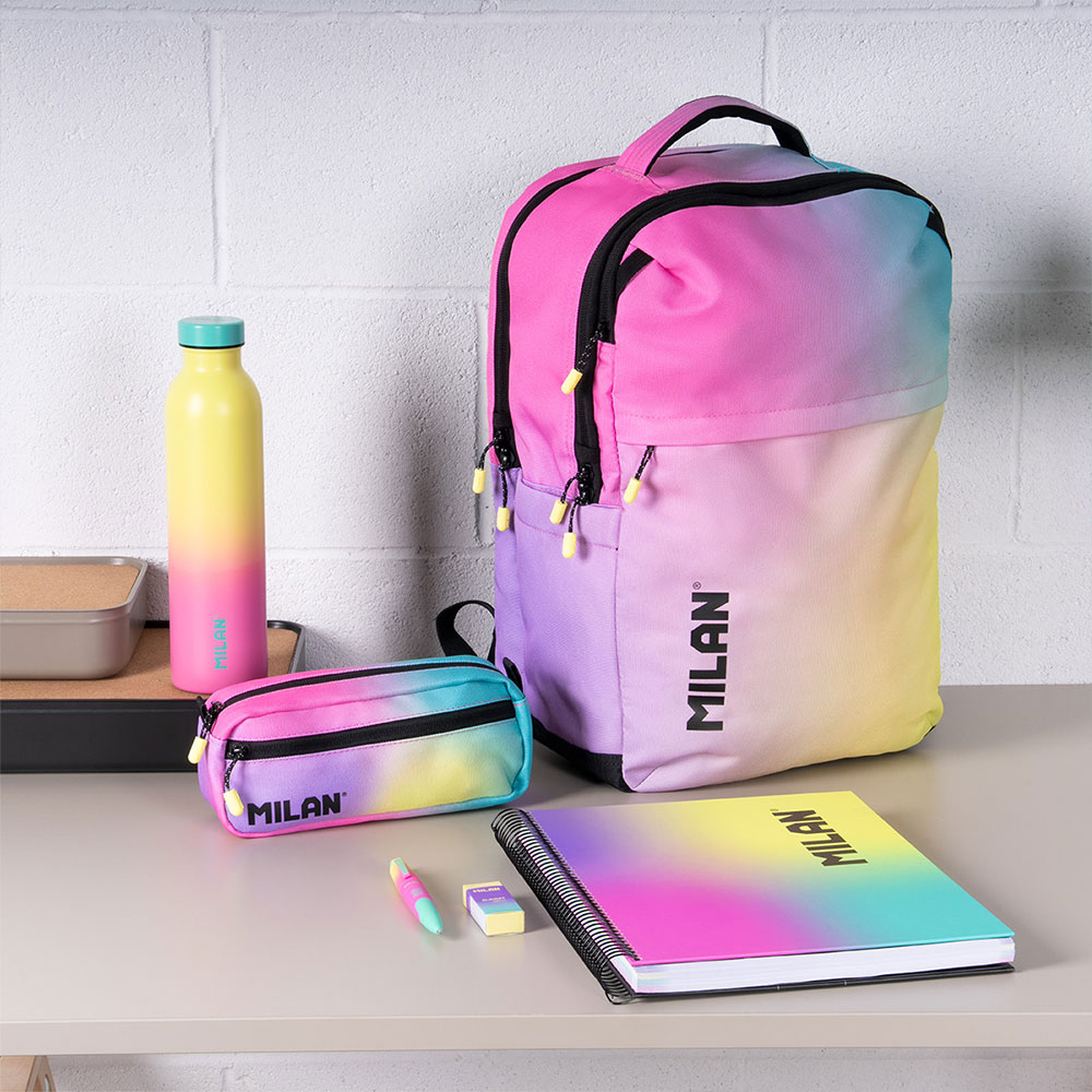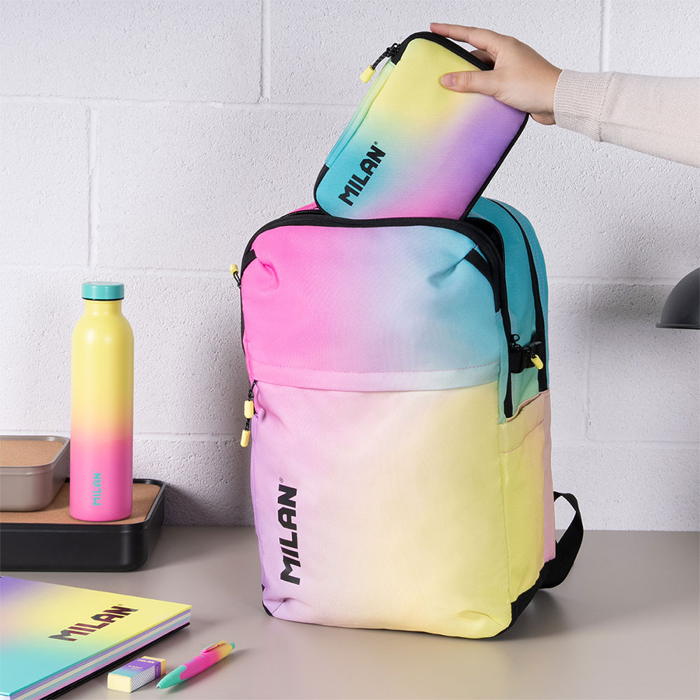 Внесете енергия, стил и готовност за всяко предизвикателство в учебния ден с раница от колекцията Sunset на Milan! Със своя уникален преливащ се дизайн в розово и жълто, тя носи усещане за енергия и позитивизъм.