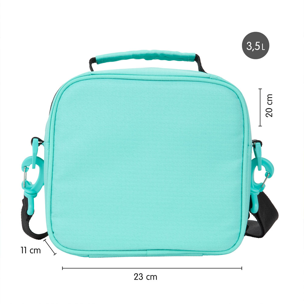 Тази изотермична чанта в преливащо тюркоазено не само изглежда невероятно, но е и супер функционална. Тя идва с 3 включени кутии за храна, които пасват точно вътре, за да не губиш място. Идеална е за училище, за плажа или за излет в планината.