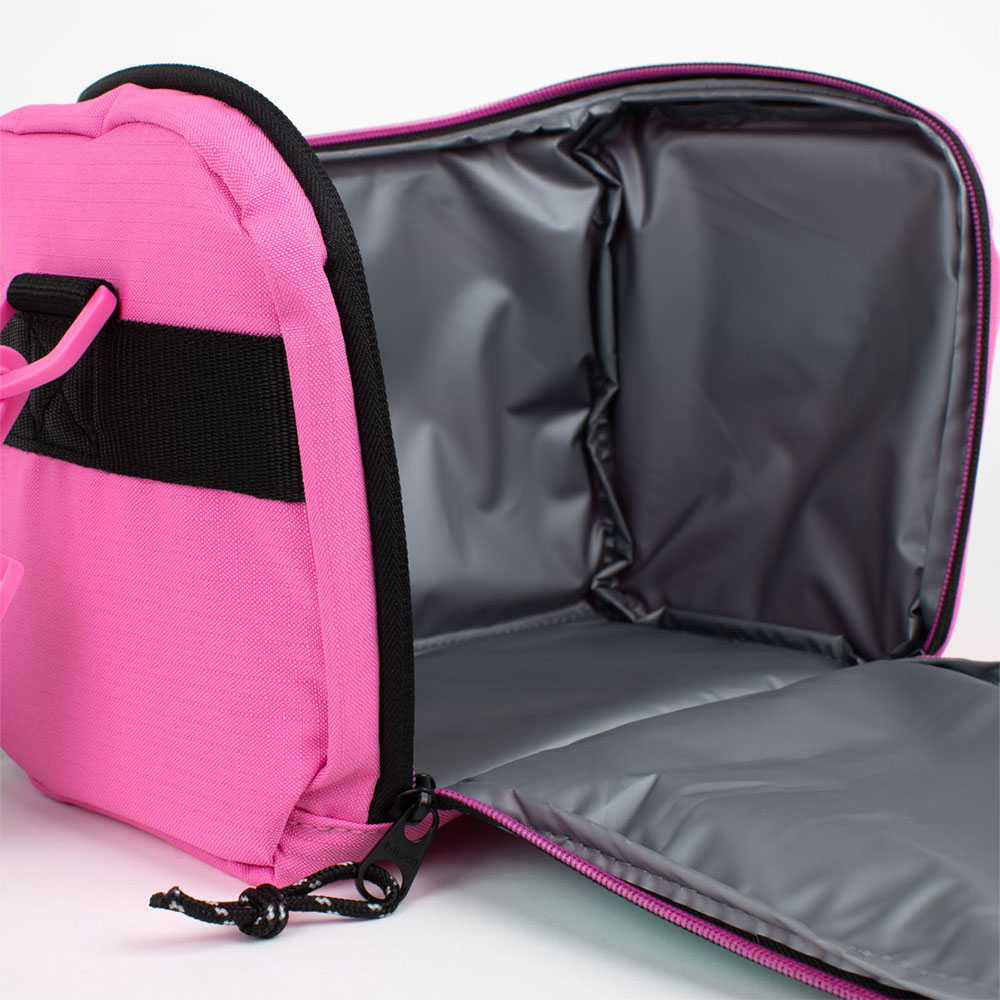 Обичаш ли да имаш пълноценен обяд и достатъчно място за плодове и напитки? Голямата термочанта от серията Sunset е тук, за да събере всичко! С нейните 5 литра капацитет и вълшебните преливащи цветове в розово и жълто, тя е едновременно супер практична и истински моден аксесоар.