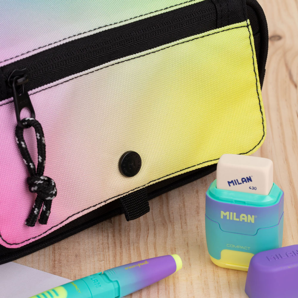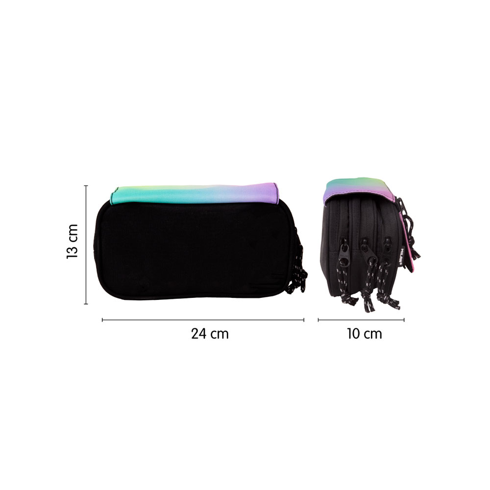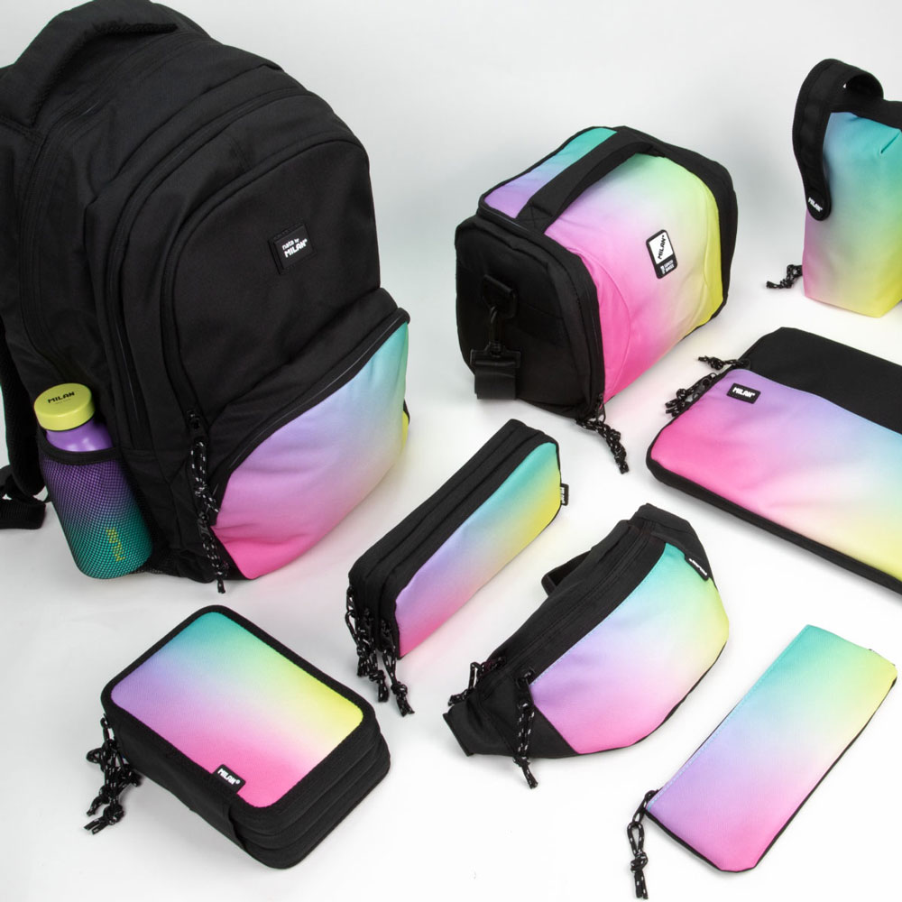 - Модерна визия: Дизайнът в черно и нежно преливащи се цветни нюанси предлага изчистен и същевременно ефектен стил, който е подходящ за ученици, които търсят стилен и различен аксесоар.