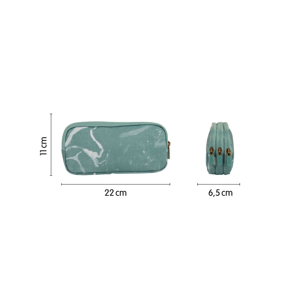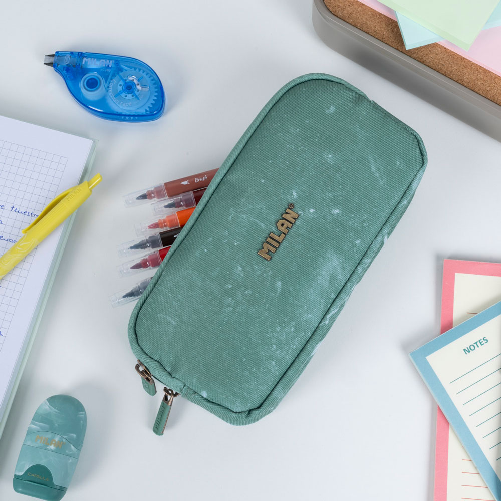 - Компактност и лекота: Със своята издължена форма, несесерът заема минимално място в раницата, като същевременно е достатъчно дълъг за стандартни моливи и тънки линии.