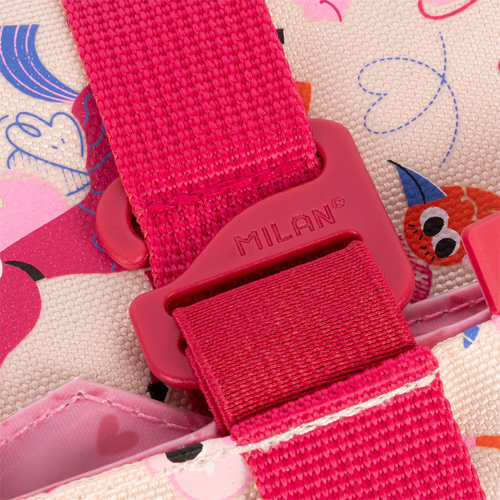 - Регулируем размер: Благодарение на велкро лепенката (котешки език), тя се адаптира идеално към размера на сандвича, плода или закуската.