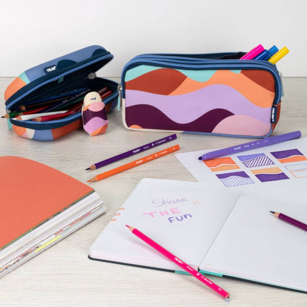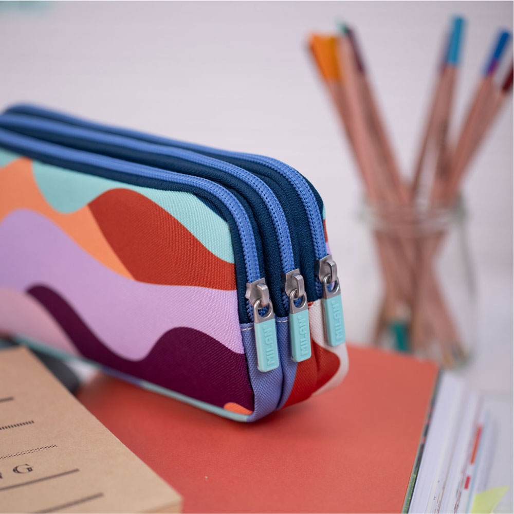 За тези, които превръщат учебния процес в забавление, представяме енергичния модел от серията Fun на Milan. Този несесер е създаден да вдъхновява, комбинирайки практичност с артистичен дизайн. Той предлага щедро пространство за съхранение, обвито в уникалната „Fun“ естетика – експлозия от цветове и абстрактни форми, вдъхновени от изкуството на колажа.