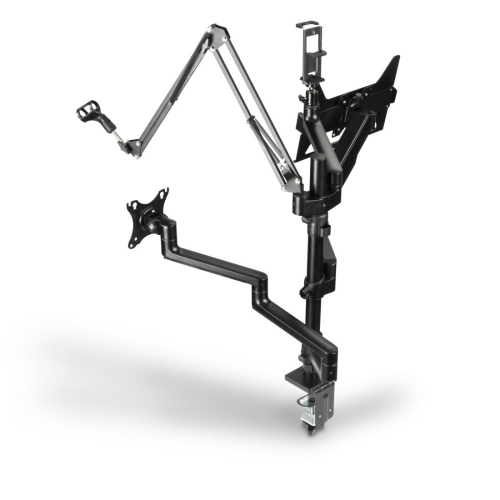 Индивидуално използваем статив за стрийминг с 4 регулируеми на височина рамена и включени различни аксесоари - идеален за стрийминг настройка, като студио за стрийминг на живо и за игри, за влогъри и стрийминг сесии в Twitch, YouTube и др., като ергономична работна станция в офиса или домашен офис и др.