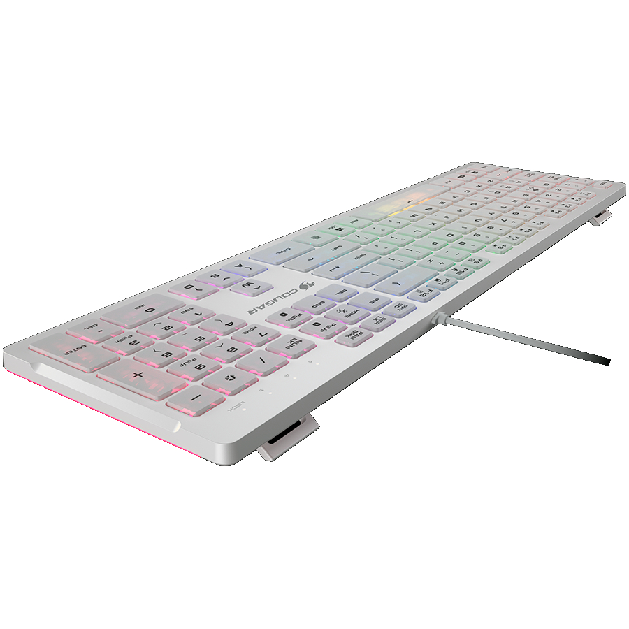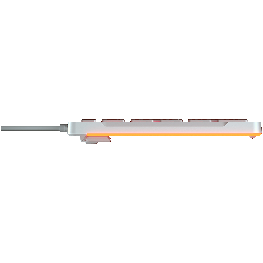 Клавиатура с ultra thin дизайн и Scissor-switch бутони, подходяща за ежедневна работа и комфортно писане. Свързва се с USB кабел и разполага с RGB подсветка, N-Key Rollover и мултимедийна функция.