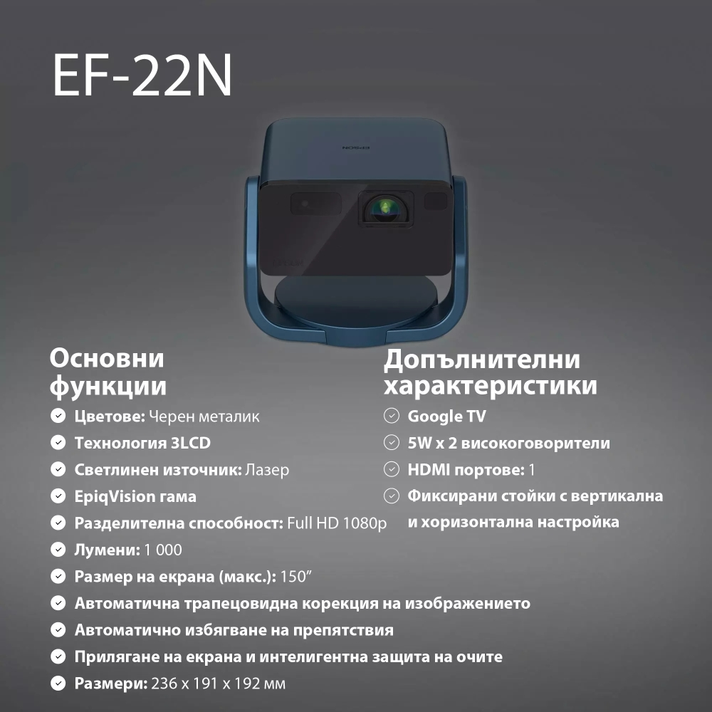 Epson EF-22N се предлага с вградена стойка и размер на екрана до 150 инча
