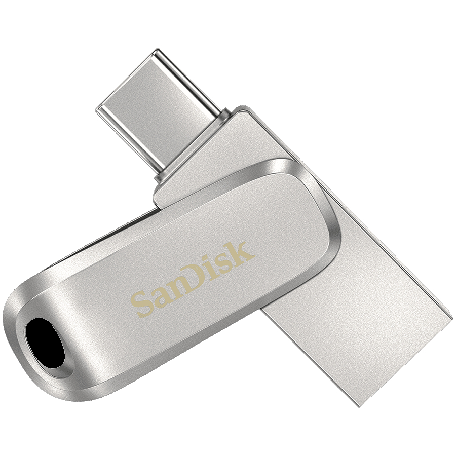 The all-metal flash drive, 2 in 1 with USB Type-C and Type-A connector.