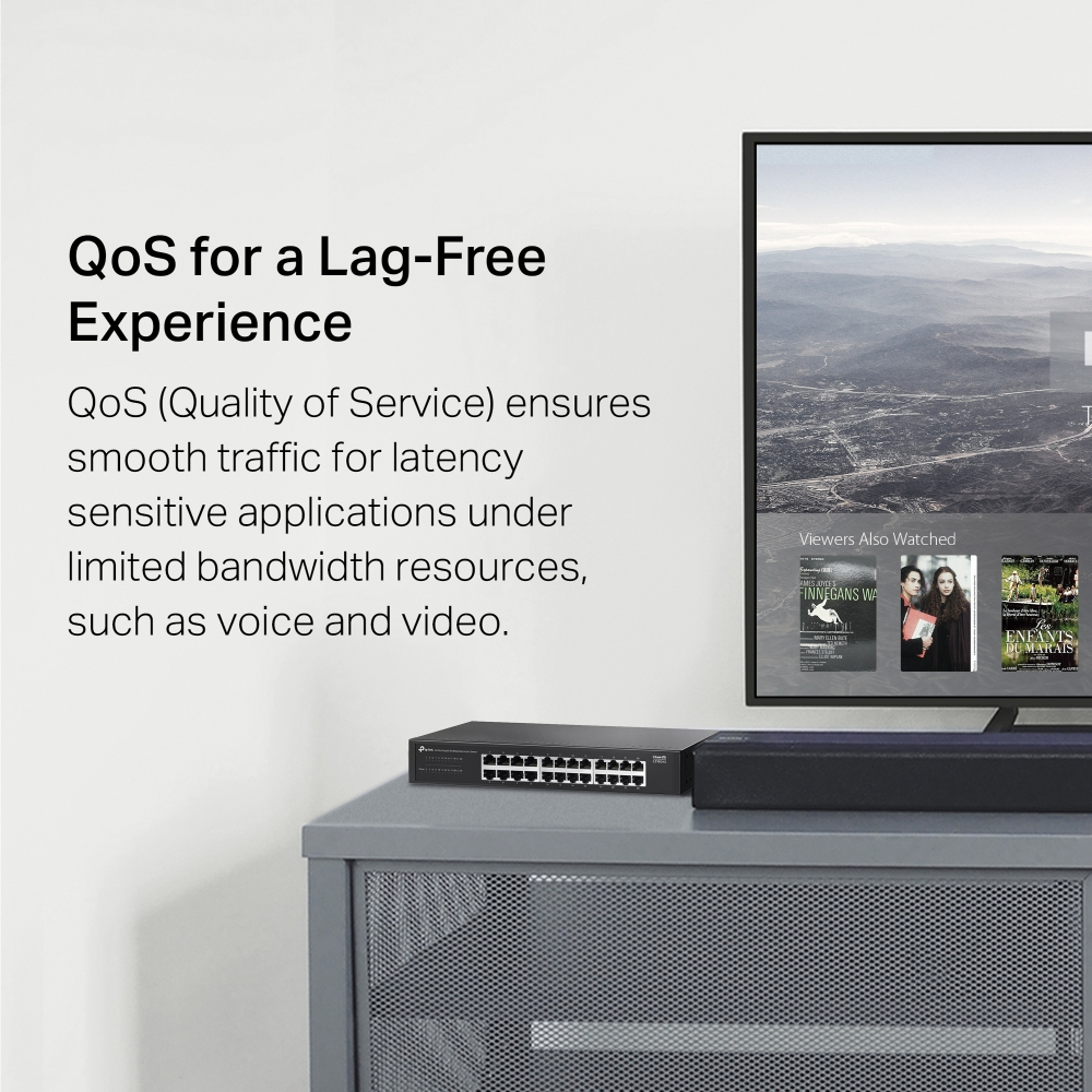 Rapidly expand your wired network with twenty-four 10/100/1000 Mbps Ethernet ports — 10 times faster than standard 10/100 Mbps Ethernet ports. The LS1024G offers flexible connectivity and is fully compatible with 4K UHD TVs, computers, printers, IP cameras, gaming consoles, and more.