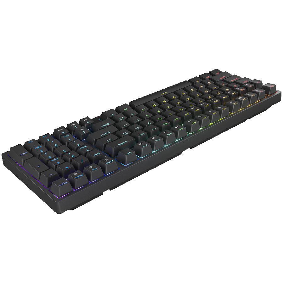 The keyboard offers three connection modes - wired, 2.4GHz wireless and Bluetooth, with the ability to connect to up to 5 devices simultaneously and quickly switch between them. The compact 98% layout saves space without compromising on functionality.